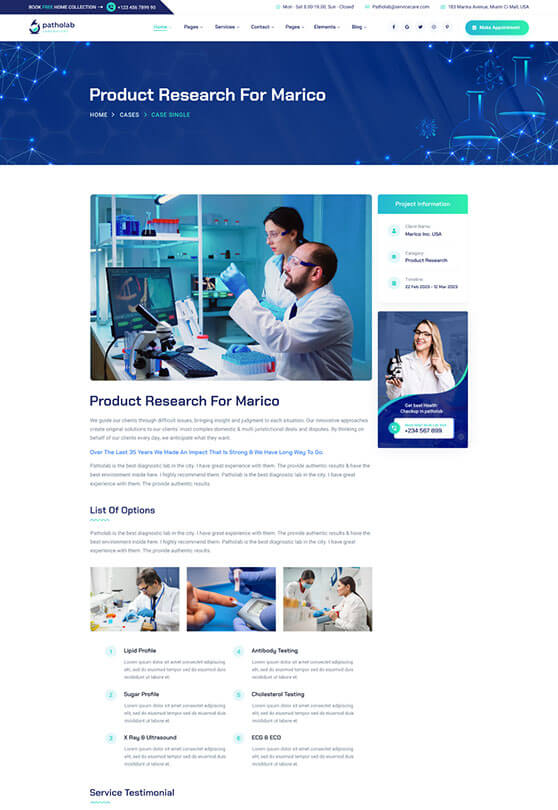 As packages ar are the most important features in a laboratory website, we have presented them in a versatile manner. As client you will get agreat exposure in the details page also.